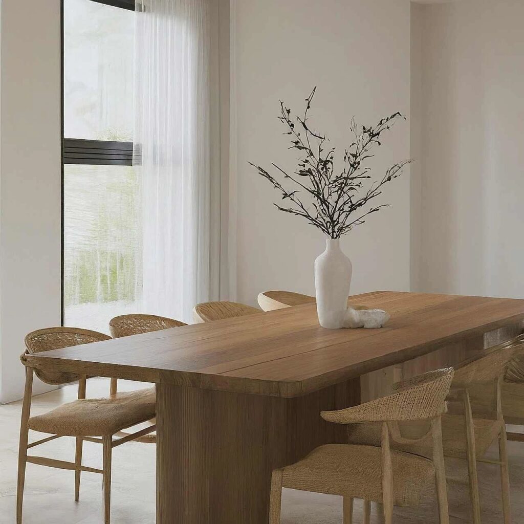 This style thrives on natural materials—think wood, linen, stone, clay, wool, and boucle. Textures are layered intentionally for a tactile richness, while matte finishes replace gloss to maintain a soft, understated look. The result is a space that invites touch and exudes quiet luxury.
